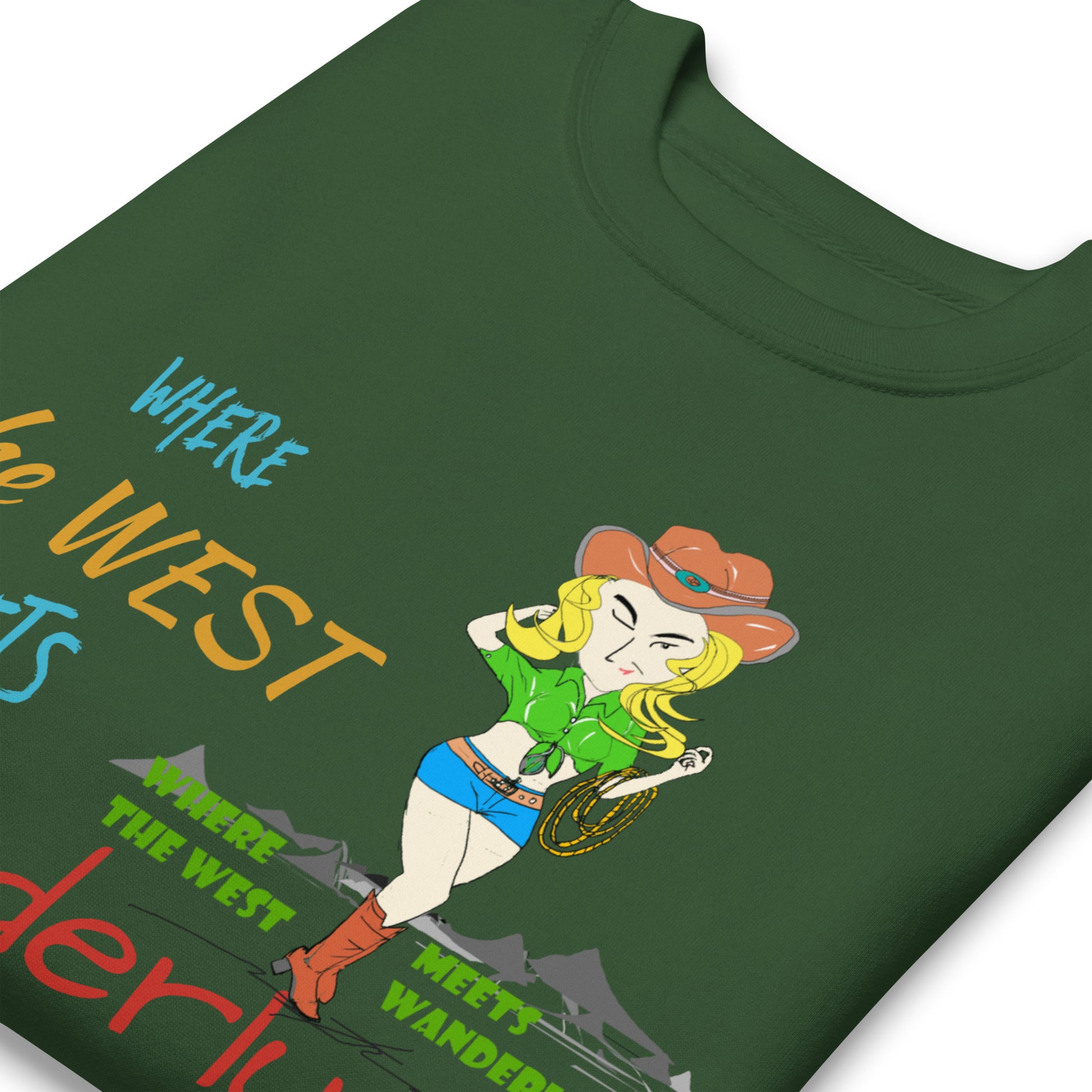 Meet your new favorite layer—a premium sweatshirt that blends cowgirl charm with street-smart style. Built with a structured ribbed crew neck, snug long sleeve cuffs, and a sharp flat hem, this piece transitions seamlessly from solo wear to layered looks. Sink into the buttery soft fleece lining and enjoy a fit that feels like a second skin without the fuss. Whether you're channeling wanderlust vibes or keeping it low-key, this sweatshirt lets your personality shine while keeping you cozy all day long.